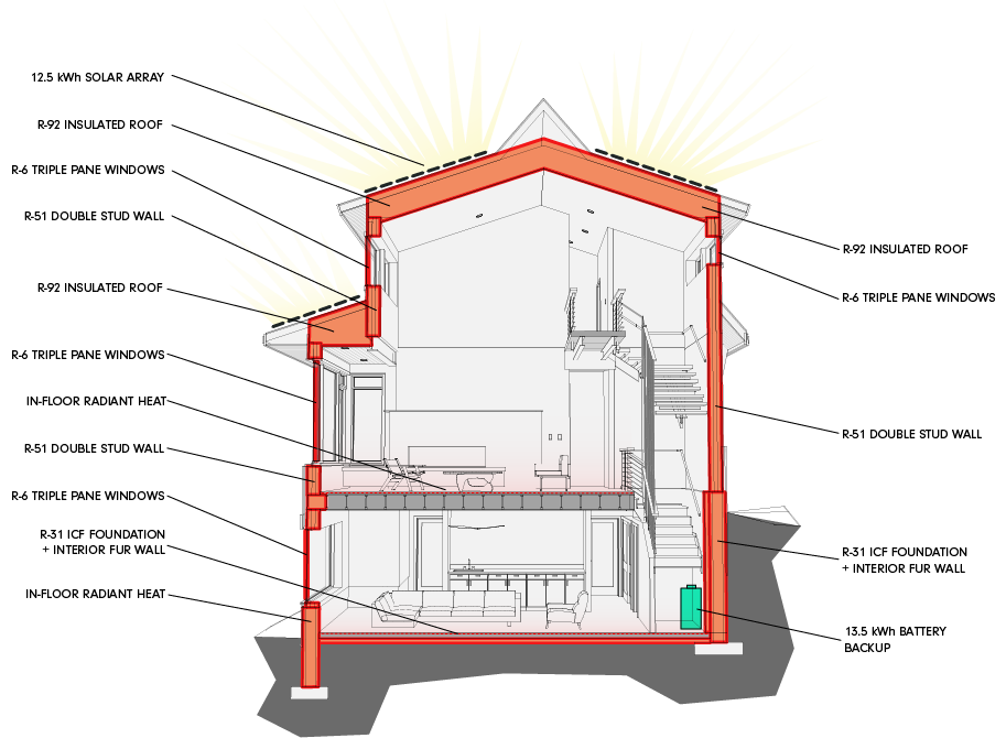The building envelope is what keeps the outside out and the inside in. It is the roofs, walls floors windows and doors as well as the most instrumental component in any high-performance building. Insulation and air-tightness are key to achieving a robust building envelope, and code-minimums just simply aren’t enough.